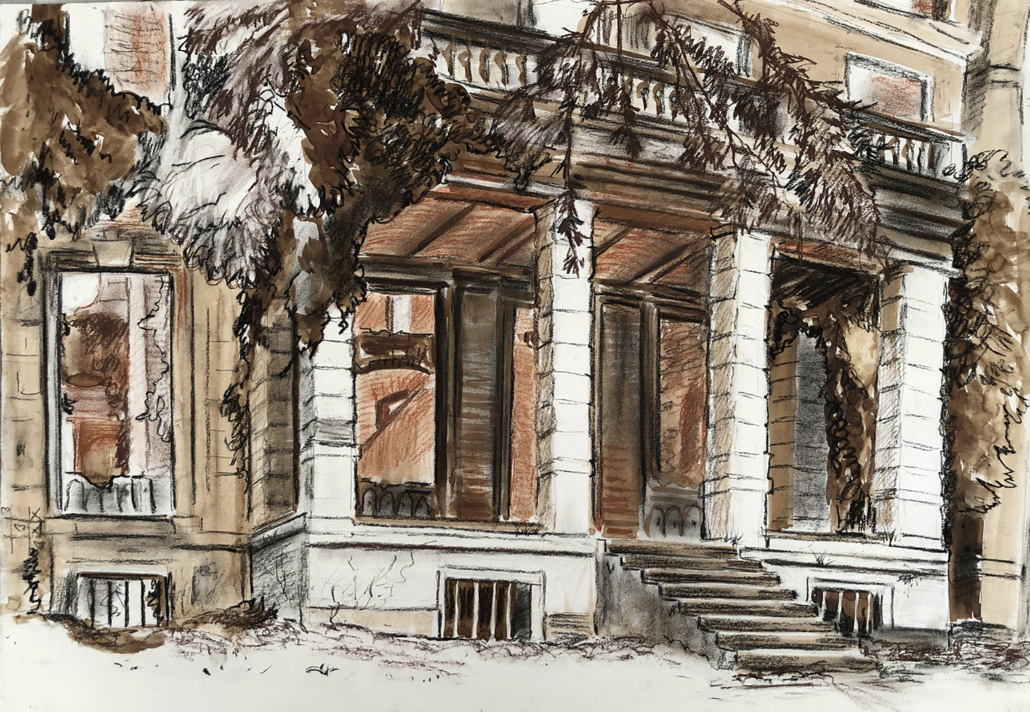 40×50 cm, notenbolster + krijt , serie van 25 schilderingen